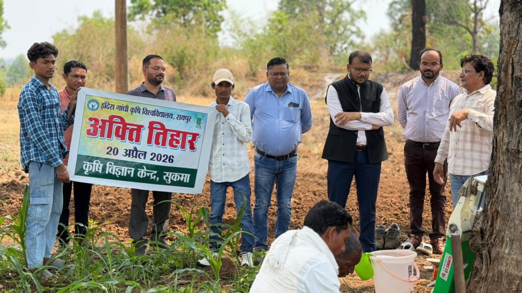 सुकमा। अक्ति तिहार (अक्षय तृतीया) के पावन अवसर पर कृषि विज्ञान केंद्र, सुकमा में एक दिवसीय विशेष कृषि उत्सव का आयोजन किया गया। इस अवसर पर परंपरागत आस्था और आधुनिक कृषि तकनीकों का आकर्षक समन्वय देखने को मिला। कार्यक्रम में सुकमा कलेक्टर श्री अमित कुमार, भारतीय किसान संघ के महामंत्री श्री धरम नाग तथा प्राकृतिक खेती के प्रगतिशील कृषक श्री नंदा नाग की गरिमामयी उपस्थिति रही। कार्यक्रम में लगभग 64 किसानों के साथ-साथ कृषि संकाय की छात्राओं ने भी उत्साहपूर्वक भाग लिया।