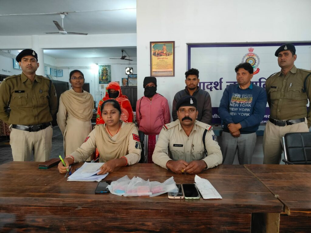 राजधानी से जनता तक। जांजगीर। मामले का संक्षिप्त विवरण इस प्रकार है कि साइबर सेल एवं थाना चाम्पा पुलिस को दिनांक 11.12.2023 को मुखबीर सूचना मिली कि जगदल्ला चाम्पा में एक महिला द्वारा अपने घर में अवैध रूप से देह व्यापार का संचालन कर अवैध रूप से लाभ कमा रही है कि सूचना पर अनुविभागीय अधिकारी (पुलिस) जांजगीर प्रदीप कुमार सोरी के नेतृत्व में टीम गठीत कर रेड कार्यवाही किया गया, आरोपीगणों को महिला के साथ आपत्तीजनक स्थिति में पाया गया, जिनके कब्जे से अनैतिक धंधे के पैसे तथा आपत्तिजनक वस्तुए एवं 02 नग मोबाईल बरामद की गई तथा घटना स्थल से दो मोटर सायकल बरामद किया जाकर आरोपियों के विरूद्ध थाना चाम्पा में अपराध क्रमांक 588/2023 धारा 3, 4, 5, 7 अनैतिक ब्यपार निवारण अधिनियम 1956 के तहत अपराध पंजीबद्ध किया जाकर विवेचना कार्यवाही में लिया गया। विवेचना दौरान आरोपी (01) निर्मल प्रसाद बरेठ निवासी दारंग थाना चाम्पा (02) राजेन्द्र खोबरागड़े निवासी उमरेल रोड़ दिगोरी, सक्करदारा नागपुर (महाराष्ट्र), संचालिका एवं एक महिला के विरूद्ध अपराध धारा सदर का सबुत पायें जाने से विधिवत् गिरफ्तार कर दिनांक 12.12.23 को न्यायिक रिमाण्ड पर भेजा गया है। उपरोक्त कार्यवाही में एसडीओपी प्रदीप कुमार सोरी के नेतृत्व में निरी. प्रवीण द्विवेदी सायबर सेल, निरीक्षक मनीष सिंह परिहार थाना प्रभारी चाम्पा, सउनि तीजराम जांगड़े थाना चाम्पा, सउनि मुकेश पाण्डेय, प्रआर. बलबीर सिंह, महिला आर. दिब्या सिंह सायबर सेल एवं महिला प्रआर श्यामा जयसवाल, आरक्षक गौरी शंकर राय, नितिन द्विवेदी थाना चाम्पा का सराहनीय योगदान रहा।