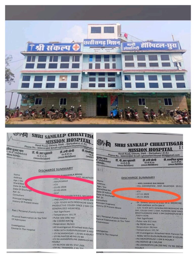जिले के छुरा स्थित श्री संकल्प छत्तीसगढ़ मिशन हॉस्पिटल एक बार फिर गंभीर आरोपों के घेरे में है। आयुष्मान भारत योजना के तहत करोड़ों रुपए के कथित फर्जीवाड़े, बिना अनुमति ICU संचालन, और गंभीर मरीजों के इलाज में लापरवाही जैसे आरोपों ने स्वास्थ्य विभाग और प्रशासन की कार्यप्रणाली पर भी सवाल खड़े कर दिए हैं।