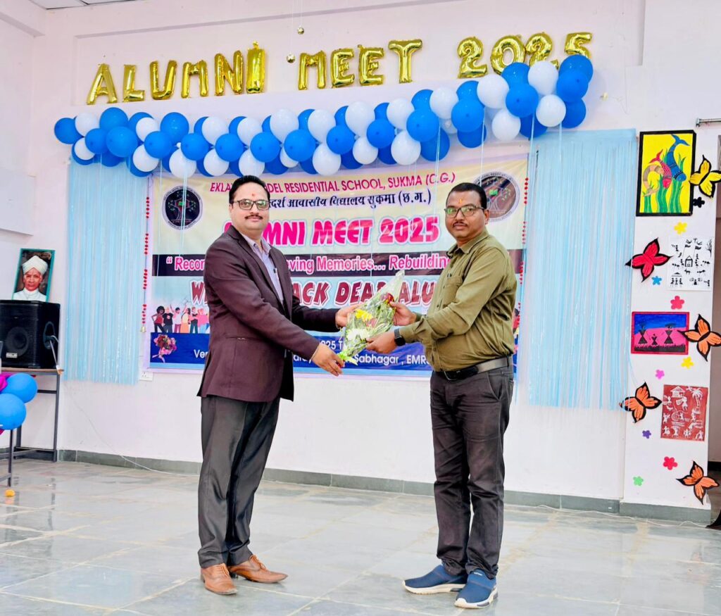 सुकमा- एकलव्य मॉडल आवासीय विद्यालय सुकमा में 6 दिसंबर को एलुमनी मीट 2025 का भव्य आयोजन हुआ, जिसमें पूर्व छात्रों का उत्साह और विद्यालय परिवार का स्नेह देखते ही बन रहा था। कार्यक्रम के मुख्य अतिथि जिला शिक्षा अधिकारी श्री जी.आर. मंडावी का स्वागत विद्यालय के प्राचार्य श्री राजीव कुमार ने किया।