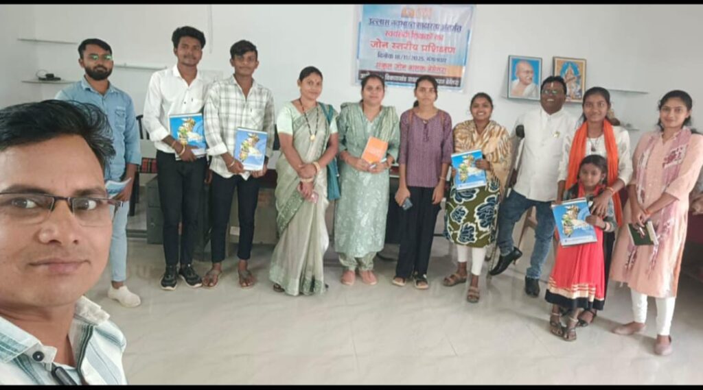 बेमेतरा – बीआरसी भवन बेमेतरा में उल्लास नवभारत साक्षरता कार्यक्रम के अंतर्गत स्वयं सेवी शिक्षकों का द्वितीय चरण का प्रशिक्षण का आयोजन किया गया जिसमें मुख्य रूप से जिला नोडल अधिकारी खोमलाल साहू,बीआरसी,राजेंद्र कुमार साहू ,शैक्षिक समन्वयक एवं प्रशिक्षण प्रभारी नीलकंठ शिवारे ,शैक्षिक समन्वयक अब्दुल इमरान खान शैक्षिक समन्वयक सुखनंदन अनंत शैक्षिक समन्वयक सुनीता साहू,रजनी देवांगन, मास्टर ट्रेनर ईश्वरी प्रसाद घृतलहरे एवं सुकन्या राजपूत के उपस्थिति में कार्यक्रम का शुभारंभ मां सरस्वती की पूजा अर्चना नोडल अधिकारी एवं बीआरसी सर के द्वारा किया गया एवं मास्टर ट्रेनर ईश्वरी प्रसाद घृतलहरे के द्वारा सरस्वती वंदना प्रस्तुत गया इसके पश्चात सभी प्रशिक्षार्थी को बीआरसी सर के द्वारा आवश्यक दिशा निर्देश देते हुए उल्लास साक्षरता पर प्रकाश डाला गया इसके पश्चात नोडल अधिकारी खोम लाल साहू जी ने उल्लास नवभारत साक्षरता कार्यक्रम को विस्तृत रूप से समझाया एवं आगामी 7 दिसंबर 2025 को बुनियादी साक्षरता एवं संख्यात्मक आकलन परीक्षा की तैयारी के लिए असाक्षरों को पूर्ण रूप तैयार करना है यह योजना भारत सरकार की महत्वपूर्ण योजना है सत प्रतिशत भारत को पूर्ण साक्षर कर नवभारत साक्षरता कार्यक्रम को सफल बनाना है इसके पश्चात प्रशिक्षण कार्यक्रम प्रारंभ किया गया जिसमें ईश्वरी प्रसाद घृतलहरे ने सर्वप्रथम स्वयं सेवी शिक्षकों का पंजीयन किया गया पंजीयन पश्चात प्रशिक्षण के मूल उद्देश्यों पर चर्चा किया गया इसके पश्चात मास्टर ट्रेनर सुकन्या राजपूत ने भी सभी प्रशिक्षार्थियों को गतिविधियों के माध्यम से पंजीकृत कर सभी असाक्षरों किस तरह से पढ़ाया जाना है और किस तरह से मोटिवेट कर उनको पढ़ने के लिए प्रेरित किया जाना है एवं उन लोगों को पढ़ने की क्या आवश्यकता है आदि बातों को अपने प्रशिक्षण के माध्यम से बताया इसके बाद दोपहर लंच में चाय नाश्ते की व्यवस्था की गई लंच ब्रेक के बाद पुनःप्रशिक्षण प्रारंभ की गई जिसमें मास्टर ट्रेनर ईश्वरी प्रसाद घृतलहरे ने प्रशिक्षार्थियों को TLM के माध्यम से ग्रामीणों को कैसे पढ़ाया जाना है सरल भाषा में या उनके शब्दों में कैसे समझाया जाना है आदि को बताया गया हिंदी एवं गणित दोनों के लिए TLM बनाकर बताया और ग्रामीणों से किस तरह से व्यवहार कर उनके दिल को कैसे जीता जाना है इस पर कई उदाहरण देकर घृतलहरे ने सभी स्वयंसेवी शिक्षकों को विस्तृत रूप से जानकारी दी असाक्षरों को पढ़ने के लिए जो पुस्तक दी गई है उस पुस्तक में बहुत ही आसान तरीका से समझ विकसित करने का प्रयास किया गया है बीच-बीच में सभी प्रशिक्षार्थियों को उल्लास ताली बजाकर उनमें जोश पैदा किया जा रहा था। उल्लास कार्यक्रम राष्ट्