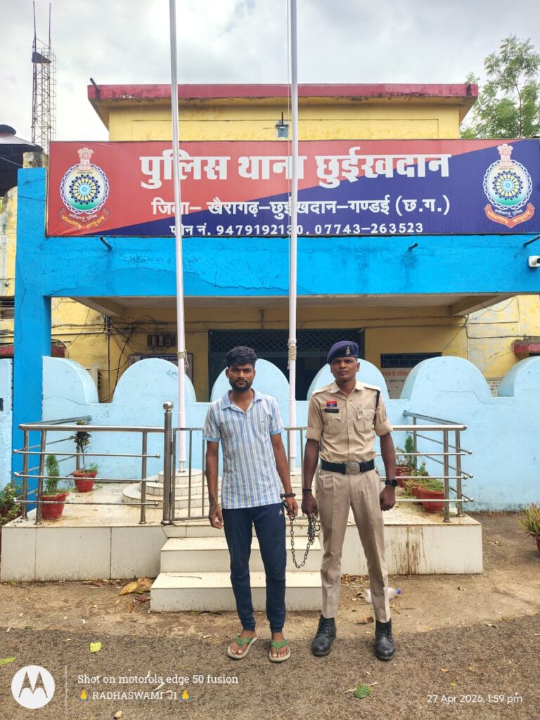 खैरागढ़/छुईखदान : प्रार्थी द्वारा थाना छुईखदान में रिपोर्ट दर्ज कराई गई कि उसकी नाबालिग पुत्री को संदेही द्वारा बहला-फुसलाकर शादी का झांसा देकर अपहरण कर ले जाया गया है। रिपोर्ट पर थाना छुईखदान में अपराध क्रमांक 77/2026 धारा 137(2) बीएनएस के तहत अपराध पंजीबद्ध कर विवेचना में लिया गया।प्रकरण की गंभीरता को देखते हुए वरिष्ठ अधिकारियों के निर्देशन में नाबालिग अपहृता एवं संदेही की लगातार तलाश की जा रही थी। विवेचना के दौरान नाबालिग बालिका को सकुशल बरामद कर परिजनों को सुपुर्द किया गया।अपहृता के कथन के आधार पर प्रकरण में धारा 64(2)(ड), 96 बीएनएस एवं धारा 6 पाक्सो एक्ट की धाराओं का इजाफा किया गया। आरोपी दीपजोल कलसा को दिनांक 27.04.2026 को गिरफ्तार कर माननीय न्यायालय में पेश किया गया, जहां से उसे न्यायिक अभिरक्षा में उपजेल सलोनी भेजा गया।