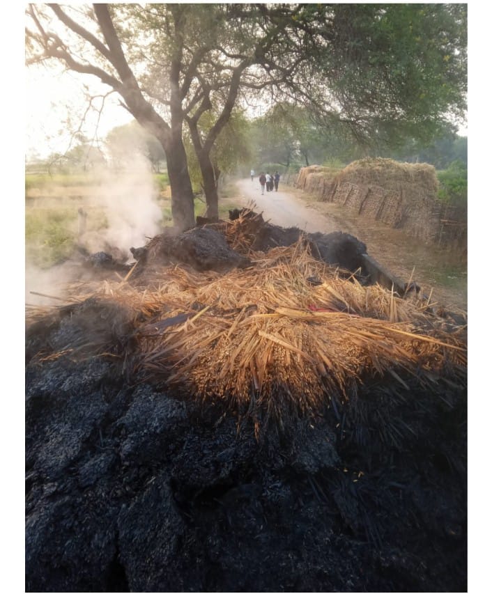 घटना स्थल पुलिस और फायर ब्रिगेड की टीम के पहुंचते तक पूरा धान जलकर राख हो गया था ।