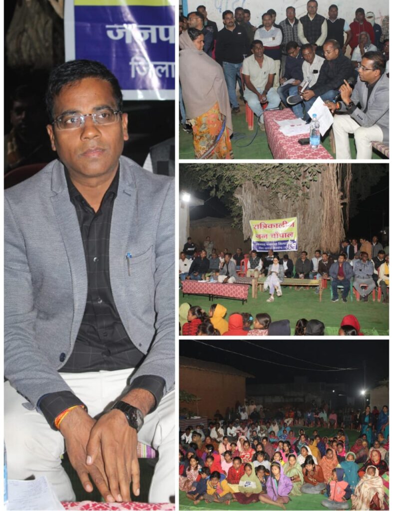 *”परसापाली में रात्रिकालीन चौपाल का आयोजन कर ग्रामीणों के साथ चर्चा किया गया। शासन के योजनाओं से लाभ की जानकारी, साथ ही ग्रामीणों की मांग पर बजट उपलब्ध होने पर कार्य करने और बजट नहीं होने पर प्रपोजल शासन को भेजने संबंधित विभाग को निर्देश दिया गया। साथ ही आंगनबाड़ी, प्राथमिक स्वास्थ्य केंद्र, मितानिन, शिक्षक की उपस्थिति और उनके कार्य, किसानों के धान खरीदी में कोई दिक्कत नहीं की जानकारी ली गई। गांव की समस्या, दिव्यांग की ट्राईसाइकिल मांग, फ़ौती नामांतरण, सीमांकन, स्वसहायता समूह के लिए क्लस्टर बिल्डिंग की मांग को अधिकारियो को पूर्ण करने के लिए निर्देशित किया गया।”