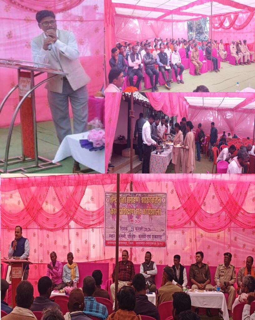 चन्द्रदीप यादव राजधानी से जनता तक कुसमी :- बलरामपुर जिले के वन परिक्षेत्र कुसमी स्थित वन विभाग रेस्ट हॉउस परिसर में 21 फरवरी 2026 को वन परिक्षेत्र स्तरीय तेंदूपत्ता शाखकार्तन एवं संग्रहण प्रशिक्षण कार्यशाला का आयोजन किया गया। कार्यशाला का उद्देश्य तेंदूपत्ता संग्राहकों को वैज्ञानिक पद्धति से शाखकार्तन, उचित संग्रहण, गुणवत्ता संरक्षण तथा वन संरक्षण संबंधी आवश्यक जानकारी प्रदान करना रहा।  कार्यक्रम के दौरान तेंदूपत्ता संग्राहकों को पत्तों की सही उलटाई, पलटाई, बंडल बनाने की विधि, मानक गुणवत्ता बनाए रखने तथा निर्धारित समय पर सुरक्षित भंडारण के संबंध में विस्तार से प्रशिक्षण. दिया गया। साथ ही ग्रामीणों के बीच जागरूकता अभियान चलाकर वनों की सुरक्षा एवं आग से बचाव के महत्व पर विशेष जोर दिया गया। उप वनमंडलाधिकारी आर, एस श्रीवास्तव ने अपने संबोधन में कहा कि वनों को आग से बचाना प्रत्येक नागरिक की जिम्मेदारी है। उन्होंने पेड़ों की अवैध कटाई रोकने और तेंदूपत्ता संग्रहण के दौरान निर्धारित दिशा-निर्देशों का पालन करने पर बल दिया। फड़ मुंशी एवं संबंधित कर्मचारियों को भी आवश्यक दिशा-निर्देश प्रदान किए गए। कार्यशाला में उपस्थित उप प्रबंध संचालक संतोष पांडेय (बलरामपुर), वन परिक्षेत्र अधिकारी काली राम (रेंजर) कुसमी एस.डी.ओ. प्रशिक्षु मणिकांत वर्मा, जिला अध्यक्ष लघु वनोपज सहकारी संघ लालसाय मिंज, उप प्रबंध संचालक संतोष पांडे एवं, वन परिक्षेत्र अधिकारी शंकरगढ़ मुकुंद पांडे,गजाधरपुर प्रबंधक सुकर राम पैकरा, उमको समिति प्रबंधक रघुवीर भगत, शंकरगढ़ समिति प्रबंधक मदन टोप्पो,एवं सभी पोषक अधिकारी, फड़ अभिरक्षक, फड़ मुंशी सहित वन विभाग के अधिकारी कर्मचारी, बड़ी संख्या में ग्रामीणजन सहित उपस्थित रहे।  आज के इस तेंदूकता संग्रहण साखकर्तन कार्य प्रशिक्षण कार्यशाला का उद्बोधन एवं सफल संचालन उमको समिति के प्रबंधक रघुवीर भगत के द्वारा किया गया। आज के तेंदूपत्ता संग्रहण साखकर्तन कार्य प्रशिक्षण में उपस्थित सभी के लिए दोपहर का भोजन की व्यवस्था भी कराई गई थी और उपस्थित सभी को भोजन कराया गया।  आज के इस कार्यशाला का समापन वन है तो जीवन है के संदेश के साथ समाप्त किया गया।