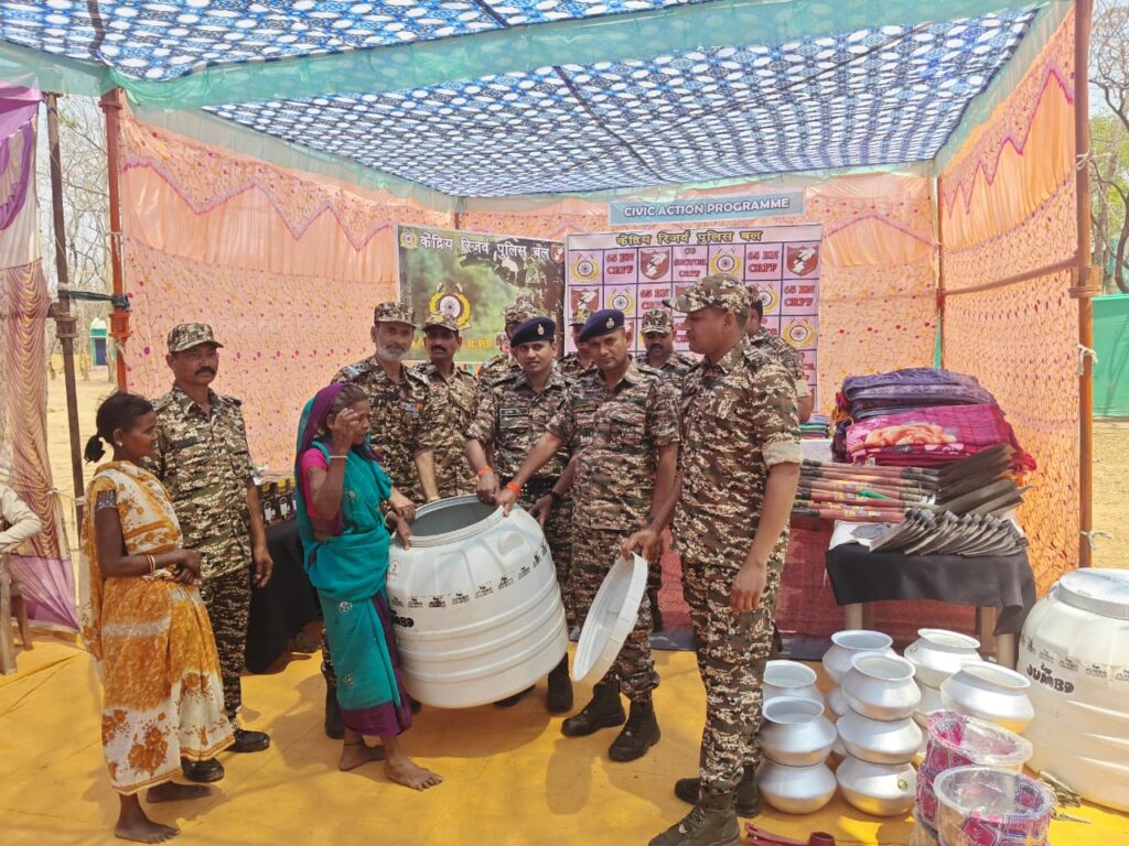 उन्होंने ग्रामीणों को नक्सलियों द्वारा की जा रही गतिविधियों के संबंध में भी जागरूक करते हुए उन्हें भयमुक्त जीवन जीने हेतु प्रेरित किया तथा आश्वासन दिया कि सीआरपीएफ एवं स्थानीय प्रशासन द्वारा ग्रामीणों की हर संभव सहायता की जाएगी।