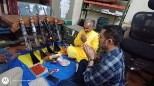 विजय दशमी के अवसर पर प्रतिवर्ष की भांति इस बर्ष भी थाना बालको में निरक्षक अभिनवकांत सिंह ने अपने थाना स्टॉफ के साथ मिलकर शस्त्रों की विधिवत पुजा अर्चना कर प्रसाद वितरण कीया , गौरतलब हो की प्रत्येक वर्ष दशहरा पर शस्त्र पूजा की जाती है।