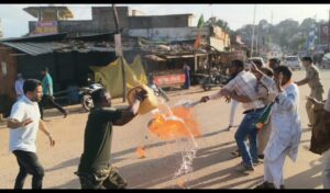 कुसमी :- प्रदेश युवा कांग्रेस के निर्देश पर बलरामपुर जिले के सामरी विधानसभा में युवा कांग्रेस जिला अध्यक्ष बृजेश यादव एवं युवा कांग्रेस के विधानसभा अध्यक्ष दीपक बुनकर के नेतृत्व में प्रदेश के गृह मंत्री विजय शर्मा का पुतला दहन किया गया।।