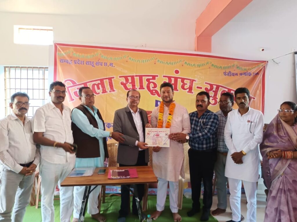 सुकमा — जिला साहू भवन में आज सम्पन्न हुए चुनाव में जगन्नाथ राजू साहू को लगातार दूसरी बार जिला साहू संघ का अध्यक्ष चुना गया। निर्वाचन प्रक्रिया पूरी तरह शांतिपूर्ण रही और सभी पदाधिकारी निर्विरोध निर्वाचित घोषित किए गए।