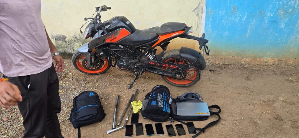 पुलिस ने आरोपियों के कब्जे से स्टील के रॉड (4), डंडे (2), बेल्ट, लोहे के पाइप, 3 मोटरसाइकिल, 1 स्कूटी, 10 मोबाइल फोन और ₹9,000 नगद जब्त किए हैं। कुल मिलाकर ₹4.09 लाख की संपत्ति बरामद की गई है।