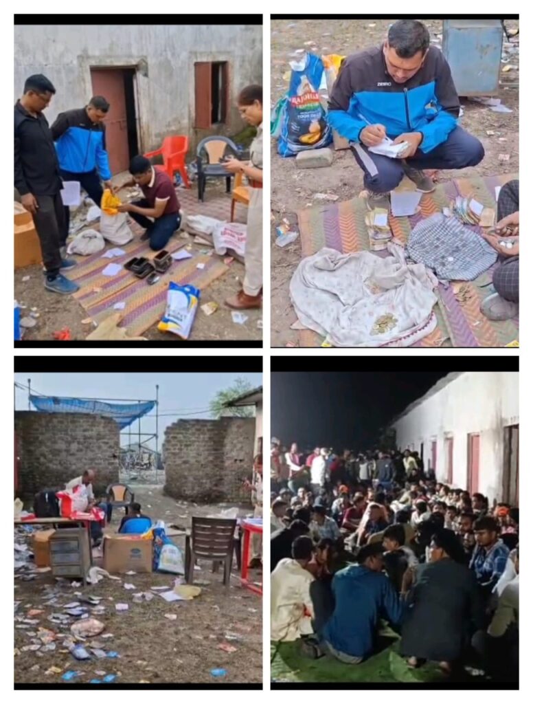 जिसमें कुल 22 प्रकरण दर्ज कर 236 जुआडियानो 1.* इन्द्रकुमार राय उम्र 50 साल , निवासी हेमाबंद, थाना दाढ़ी, 02.गुलाब बंजारे उम्र 46 साल निवासी भालूपान थाना चंदनू,03. भगवती साहू उम्र 55 साल निवासी बईहरसरी, थाना दाढ़ी 04. प्रदीप कोशले उम्र 34 साल निवासी जेवरा एन, थाना नवागढ़, 05.सुरेश बांधे उम्र 20 साल निवासी ग्राम साल्हेघोरी, थाना नवागढ़, 06. मुखीराम गायकवाड उम्र 62 साल निवासी झाल, थाना नवागढ़ 07. खेलूदास दिवाकर उम्र 45 साल निवासी तिलकापारा नवागढ़ 08. निलेश बांधे उम्र 32 साल निवासी साल्हेघोरी, थाना नवागढ़, 09. दिनेश टंडन उम्र 32 साल निवासी चकलाकुण्डा, थाना नवागढ़ 10. डुमेन्द्र मारकण्डेय उम्र 25 साल निवासी मुरकुटा, थाना नवागढ़ एवं अन्य 226 अन्य के विरूद्ध धारा 3(2) छत्तीसगढ़ जुआ (प्रतिषेध) अधिनियम 2022 के तहत कार्यावाही की गई हैं। जुआडियों के पास एवं फड से कुल जुमला नगदी रकम 1,94,548/- रूपये एवं 52 पत्ती तास को जप्त कर कार्यवाही किया गया है। साथ ही 123 मोटर सायकल कीमती करीबन 61,50,000/- रूपये, 01 कार कीमती करीबन 4,00,000/- रूपये एवं विभिन्न कंपनी के 120 मोबाईल, कीमती करीबन 8,40,000/- रूपये, जुमला कीमती करीबन 7,584,548/- रूपये (75 लाख 84 हजार 548 रूपये) को जप्त किया गया। जप्त मोबाईल की ट्रांजेक्शन हिस्ट्री पुलिस टीम द्वारा बारिकी से जांच की जा रही है। जिले में निरंतर अवैध गतिविधियों पर कार्यवाही जारी रहेगी।