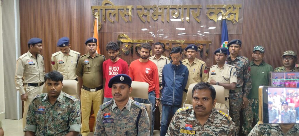 सुकमा, 05 दिसंबर 2025। जिला सुकमा के दुर्गा ज्वेलर्स में हुई सनसनीखेज लूट घटना का सुकमा पुलिस ने मात्र 3 घंटे के भीतर खुलासा कर दिया। पुलिस ने लूट में शामिल सभी 3 आरोपियों को गिरफ्तार करते हुए उनके कब्जे से लगभग 12.08 लाख रुपये मूल्य के 100% लूटे गए आभूषण, घटना में प्रयुक्त पिस्टल, चाकू, मोटरसाइकिल और मोबाइल फोन जब्त किए हैं।