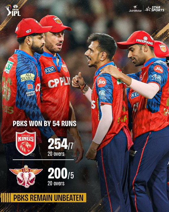 खचाखच भरे महाराजा यादवेंद्र सिंह इंटरनेशनल क्रिकेट स्टेडियम में, पंजाब किंग्स ने इस सीजन के सबसे बड़े स्कोर 254/7 का बचाव करते हुए लखनऊ सुपर जायंट्स को 200/5 पर रोक दिया. इस जीत के साथ, शानदार फॉर्म में चल रही पंजाब किंग्स ने अपनी जीत का सिलसिला जारी रखते हुए पॉइंट्स टेबल में शीर्ष स्थान पर अपनी जगह बनाए रखी, जबकि लखनऊ सुपर जायंट्स को लगातार तीसरी हार का सामना करना पड़ा और वह आठवें स्थान पर खिसक गई.