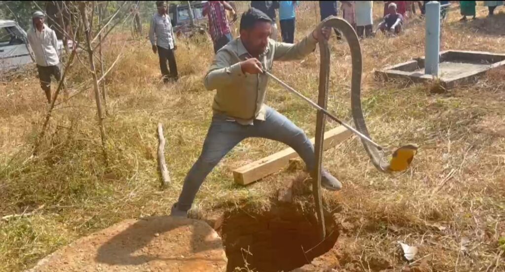 बालको के तिलाईडांड गांव में दिखा 12 फिट से अधिक लंबा किंग कोबरा: वन विभाग की निगरानी में जितेंद्र सारथी ने किया रेस्क्यू