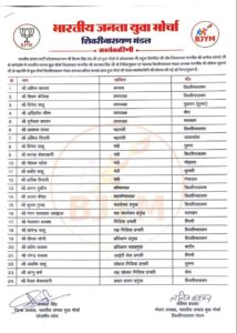 इसके अलावा सत्येन्द्र केंवट, आयुष केडिया, दीपक रायसागर (कचंदा), हितेश पटेल (तुरमा), विकास तिवारी (भठली), नवीन भीष्म (केरा), धरमराज साहू (कटौद), बसंत कुम्भकार (शिवरीनारायण), अनिकेत रायसागर, रघुवीर सर्वे (कचंदा), राहुल विश्वकर्मा (भठली) तथा आत्माराम साहू (सलखन) को विशेष आमंत्रित सदस्य बनाया गया है।युवा मोर्चा शिवरीनारायण के मंडल अध्यक्ष ललित कश्यप ने कहा कि सभी नवनियुक्त पदाधिकारि संगठन की विचारधारा को आगे बढ़ाते हुए पार्टी की नीतियों और सरकार की जनकल्याणकारी योजनाओं को गांव-गांव तक पहुंचाने का कार्य करेंगे। वहीं कार्यकर्ताओं ने सभी नव नियुक्त पदाधिकारियों को बधाई देते हुए संगठन को और मजबूत बनाने की बात कही।