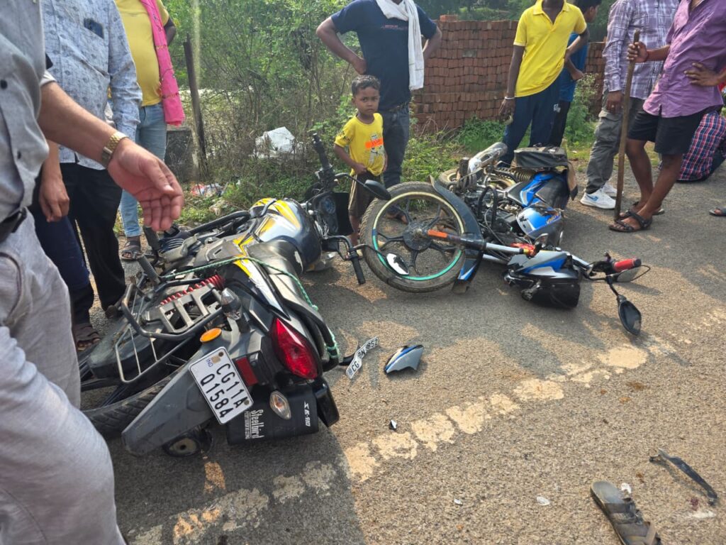 मिली जानकारी के अनुसार मुलमुला थाना क्षेत्र के नवागांव पकरिया निवासी अमृत लाल साहू पिता रामायण साहू उम्र 27 वर्ष अपने एक मित्र शांतिकुमार साहू के साथ शुक्रवार को बाइक से ग्राम धरदेई जा रहे थे। वहीं लक्ष्मीकांत श्रीवास पिता गजेंद्र श्रीवास निवासी धरदेई जो वर्तमान में बिलासपुर में रहता है और कामता शासकीय स्कूल में पदस्थ है, अपनी बाइक से सामने से आ रहा था। इस दौरान राहौद चौकी के पड़रिया मोड़ के पास दोनों की बाइक में आमने-सामने भिड़ंत हो गई। घटना में अमृत लाल और लक्ष्मीकांत को गंभीर चोटें आई। वहीं शांति कुमार को मामूली चोटें आई। दोनों घायलों को पामगढ़ सामुदायिक स्वास्थ्य केंद्र में भर्ती कराया गया, जहां प्राथमिक उपचार के बाद उन्हें बिलासपुर रेफर कर दिया गया।