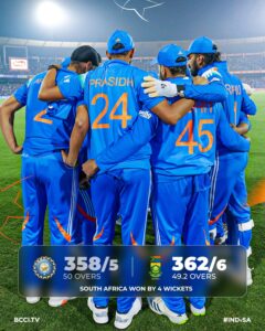 भारत के लिए अर्शदीप सिंह और प्रसिद्ध कृष्णा ने 2-2 विकेट लिए, मगर कृष्णा काफी महंगे साबित हुए। यह जीत भारत के खिलाफ वनडे क्रिकेट में दक्षिण अफ्रीका की सबसे बड़ी चेज़ में से एक रही, जिसने मैच का रोमांच अंत तक बनाए रखा और सीरीज को बराबरी पर पहुंचा दिया।
