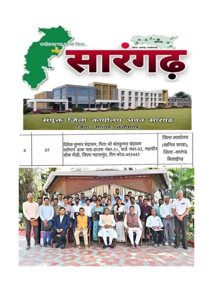 सारंगढ़: छत्तीसगढ़ राज्य के खनिज संसाधनों के बेहतर प्रबंधन और अवैध उत्खनन पर लगाम लगाने की दिशा में राज्य सरकार ने एक बड़ा कदम उठाया है। मुख्यमंत्री ने एक गरिमामय कार्यक्रम के दौरान प्रदेश के 32 नवनियुक्त खनिज निरीक्षकों को नियुक्ति पत्र प्रदान किए। इसी क्रम में, नवगठित जिला सारंगढ़-बिलाईगढ़ के खनिज निरीक्षक के रूप में विवेक कुमार चंद्राकर की पदस्थापना की गई है।