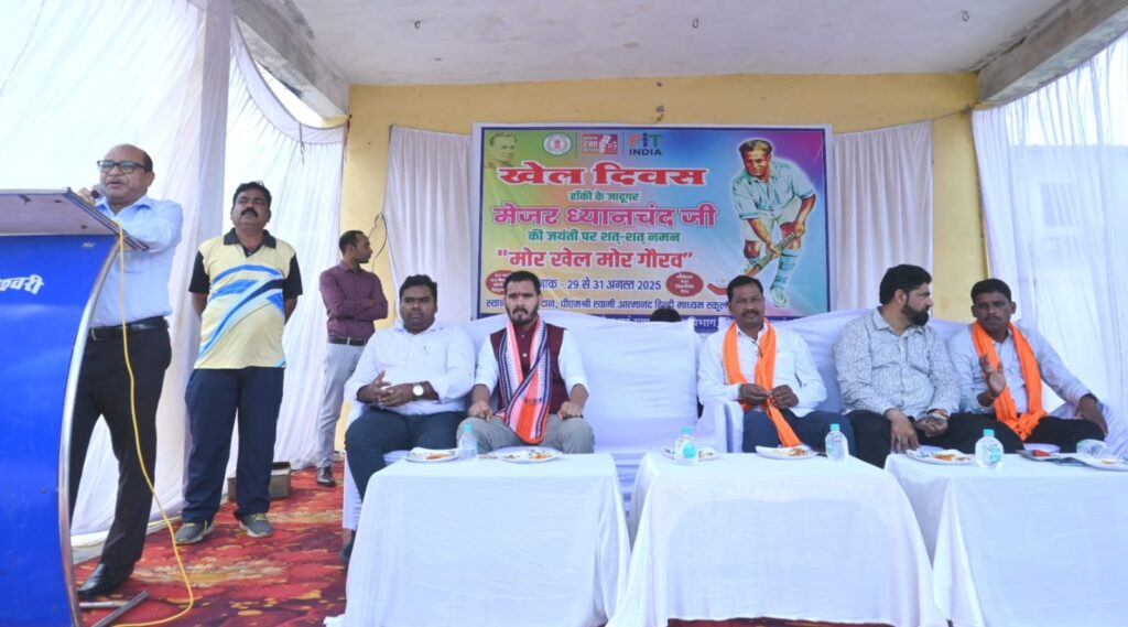 गरियाबंद-: स्व. मेजर ध्यानचंद की जयंती पर जिले में राष्ट्रीय खेल दिवस का भव्य आयोजन किया गया। मुख्य कार्यक्रम पीएमश्री स्वामी आत्मानंद उत्कृष्ट हिंदी माध्यम विद्यालय के खेल मैदान में हुआ, जहां बच्चों ने उत्साह के साथ कबड्डी, खो-खो और रस्साकसी जैसी प्रतियोगिताओं में अपनी प्रतिभा दिखाई। कार्यक्रम का शुभारंभ जिला पंचायत अध्यक्ष गौरीशंकर कश्यप और कलेक्टर बी.एस. उईके ने मेजर ध्यानचंद के चित्र पर माल्यार्पण कर किया। इस दौरान नगर पालिका अध्यक्ष रिखीराम यादव, जिला पंचायत उपाध्यक्ष लालिमा ठाकुर और अन्य जनप्रतिनिधि व अधिकारी भी उपस्थित रहे। मुख्य अतिथियों ने अपने उद्बोधन में कहा कि खेल केवल शारीरिक विकास का साधन नहीं, बल्कि अनुशासन, टीम भावना और आत्मविश्वास बढ़ाने का जरिया भी है। उन्होंने विद्यार्थियों से शिक्षा के साथ-साथ खेलों में भी सक्रिय भागीदारी करने की अपील की।