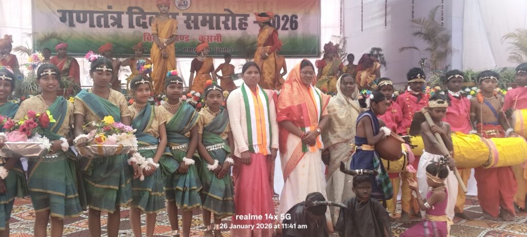 कुसमी :- बलरामपुर जिला के सामरी विधानसभा क्षेत्र के विधायक उदेश्वरी पैकरा की मुख्य आतिथ्य में 77 वें गणतंत्र दिवस के अवसर पर गणतंत्र दिवस की पूर्व संध्या पर दिनांक 25/1/26 को आज का शाम शहीदों के नाम के तहत एक से बढ़कर एक शहीद जवानों की शहादत को याद करते हुए सांस्कृतिक कार्यक्रम के साथ साथ भाषण प्रतियोगिता, निबंध प्रतियोगिता कुसमी विद्यालय के छात्र /छात्राओं सहित इस अंचल में निवास करने वाले दूर दूर से आकर इस कार्यक्रम में भाग लेने वाले प्रतिभागियों द्वारा इस कार्यक्रम में भाग लेकर शहीदों की याद में रंगारंग कार्यक्रम प्रस्तुत किया गया , साथ ही दिनांक 26/1/26 को गणतंत्र दिवस के अवसर पर सामरी विधायक उदेश्वरी पैकरा की मुख्य आतिथ्य में महात्मा गांधी, भारत माता, छत्तीसगढ़ महतारी के छाया चित्र पर दीप प्रज्वलित कर तिरंगे झंडे को सलामी देते हुए ध्वजारोहण का किया गया ,