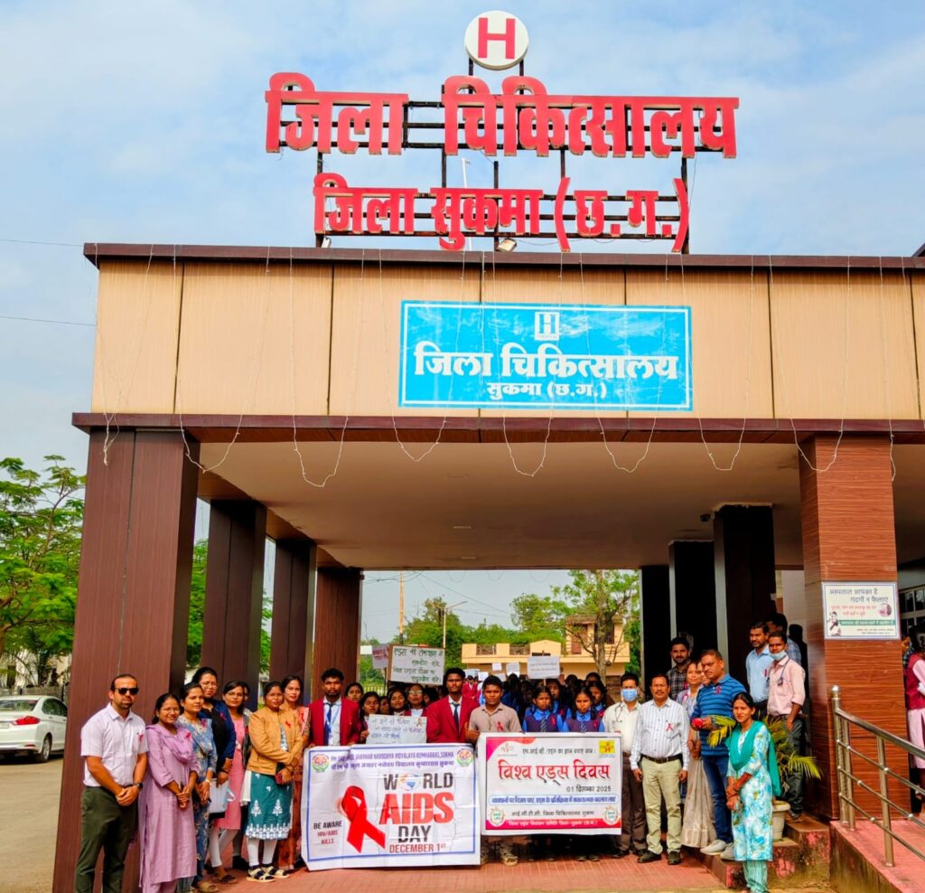 सुकमा – विश्व एड्स दिवस के अवसर पर सुकमा जिले में जन जागरूकता चलाया गया। जवाहर नवोदय विद्यालय कुम्हाररास सुकमा और बालिका पोटाकेबिन विद्यालय सुकमा के छात्र–छात्राओं ने संयुक्त रूप से एक प्रभावी एचआईवी, एड्स जनजागरूकता रैली निकालकर आमजन को स्वास्थ्य सुरक्षा और सावधानियों का संदेश दिया।