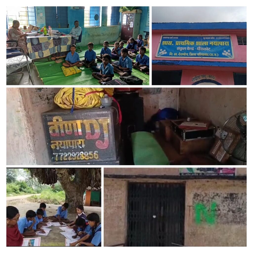 गरियाबंद –जिले के देवभोग विख के नयापारा के प्राथमिक शाला में विद्यार्थियों के लिये बैठने को जगह नही और वहां गांव का एक दबंग व्यक्ति ने स्कूल के अतिरिक्त कक्ष पर साल 2023 से कब्जा कर रखा है कब्जा ही नहीं वहां से वो अपना टेंट हाउस भी चला रहा है और ताला जड खाली करने को कहने पर दबंगई पर उतर आता है। जहां स्कूली प्रबंधन ने कई बार उसके कब्जे को लेकर ऐतराज जताया सरपंच से लेकर ब्लाक शिक्षा अधिकारी को पत्र व्यवहार व्यवहार किया पर कोई सकारात्मक हल नहीं निकला गांव में उसका दबंगई इतना की वीणा टेंट हाउस के संचालक नरेश नागेश से पूरा गांव डरता है इसलिये सरपंच पंच सहित जनप्रतिनिधि भी खाली कराने डर रहे हैं।
