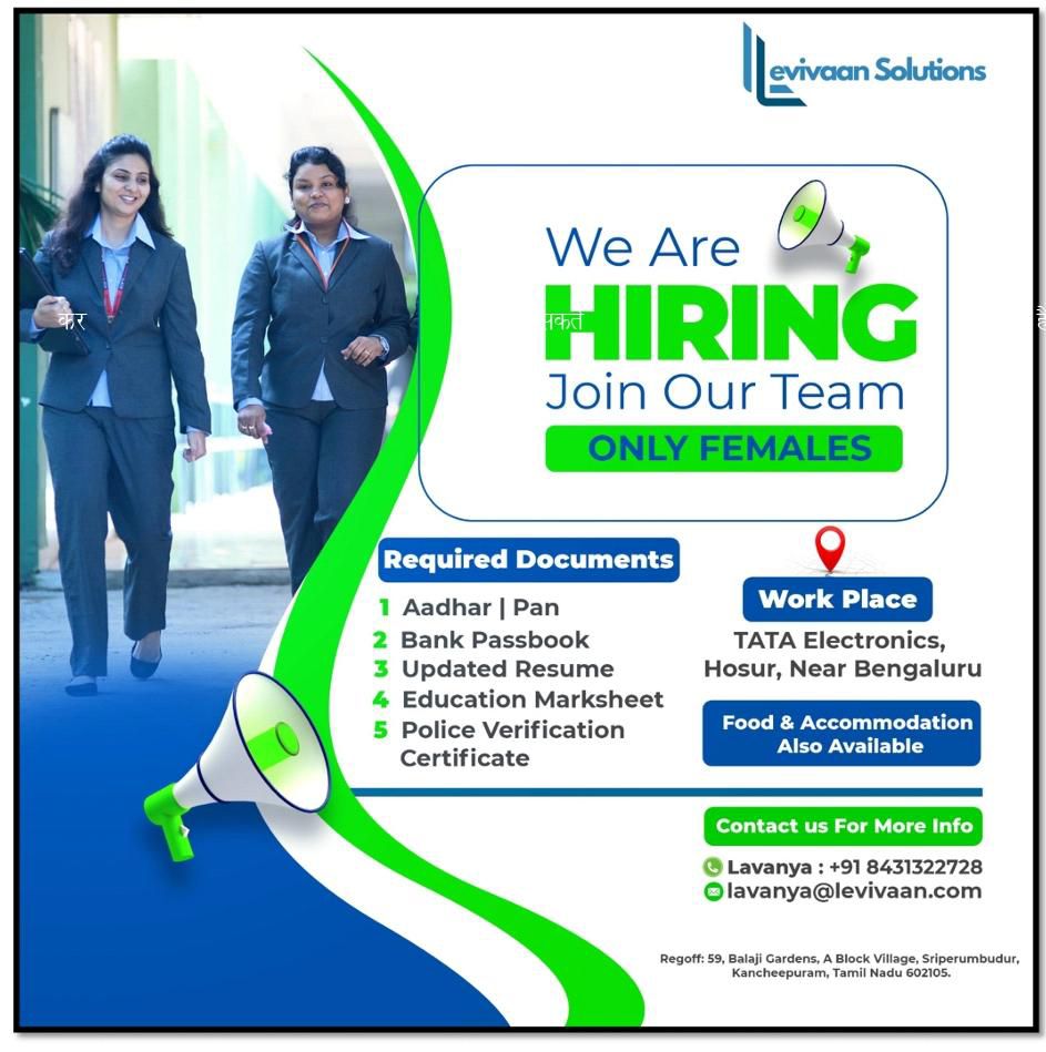 सुकमा / जिले की शिक्षित बेरोजगार महिलाओं के लिए जिला परियोजना लाइवलीहुड कॉलेज सुकमा में कार्यालयीन समय प्रातः 10 बजे से संध्या 05 बजे तक रोजगार के लिए पंजीयन कार्य किया जा रहा है। इस प्लेसमेंट ड्राइव में “लिवियन सॉल्यूशन प्रा. लि. (बेंगलुरु)” के माध्यम से टाटा इलेक्ट्रॉनिक्स, बेंगलुरु में रोजगार के अवसर प्रदान किए जाएंगे। कैंप में चयनित अभ्यर्थियों को नि:शुल्क रहने और खाने की सुविधा के साथ अच्छा वेतन मिलेगा। सुपरवाइजर 50 पद हेतु आयु 21 से 35 वर्ष, योग्यता स्नातक, वेतन ₹20,000 प्रति माह होगा और मोबाइल असेंबली लाइन ऑपरेटर 1000 पद हेतु आयु 18 से 30 वर्ष, योग्यता 10वीं पास, वेतन ₹18,000 प्रति माह होगा। आवश्यक दस्तावेज में आधार कार्ड, पैन कार्ड, बैंक पासबुक, शैक्षणिक अंकसूची एवं 4 पासपोर्ट साइज फोटो साथ लाना अनिवार्य है। इच्छुक महिलाएं जिला परियोजना लाइवलीहुड कॉलेज सुकमा में दूरभाष क्रमांक 6263329055, 8319799339 में संपर्क कर सकती हैं। पंजीयन की अंतिम तिथि 25 नवंबर निर्धारित की गई है।