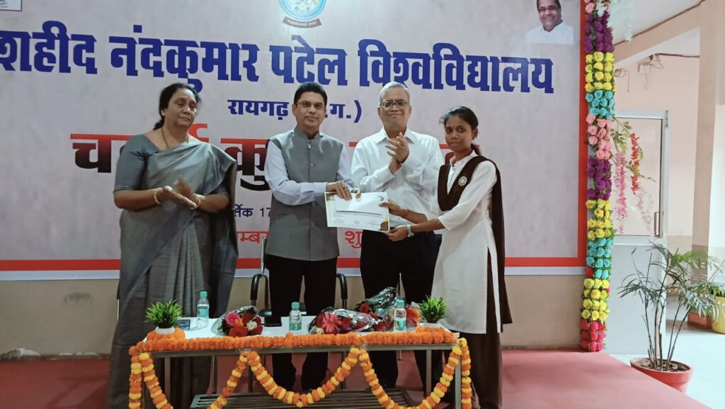 अकलतरा। श्री ऋषभ विद्योदय महाविद्यालय बनाहिल अकलतरा की छात्रा रोहिणी केवट को 25 सितंबर को छत्तीसगढ़ शासन राज्य सरकार द्वारा सर्वश्रेष्ठ राज्य राष्ट्रीय सेवा योजना स्वयंसेवक के रूप मे छत्तीसगढ़ के मुख्यमंत्री श्री विष्णु देव सहाय द्वारा ₹10000 एवं प्रशस्ति पत्र से सम्मानित किया गया था रोहिणी केवट पिछले साल राष्ट्रीय सेवा योजना की राष्ट्रीय कैंप हरियाणा में शहीद नंदन कुमार पटेल विश्वविद्यालय का प्रतिनिधित्व कर चुकी है जिसके चलते इस सत्र शाहिद नंद कुमार पटेल विश्वविद्यालय रायगढ़ द्वारा कुल उत्सव में 8 नवंबर को ₹2000 एवं प्रशस्ति पत्र से सर्वश्रेष्ठ स्वयंसेवक के रूप में सम्मान किया गया रोहिणी पिछले 3 सालों से निशुल्क शिक्षा प्रदान कर रही है एवं समाज सेवा के लिए विभिन्न कार्यों में निरंतर सक्रिय भूमिका निभाने का कार्य कर रही है जिसके चलते उनके उत्कृष्ट कार्य को देखते हुए उन्हें यह सम्मान दिया गया रोहिणी ने इसका श्रेय विश्वविद्यालय के कार्यक्रम अधिकारी श्री एका सर एवं महाविद्यालय के प्राचार्य एवं जिला कार्यक्रम अधिकारी श्री बीके पटेल अरविंद मिरी एवं दुर्गा टंडन एवं अपने माता-पिता को दिया है इस महाविद्यालय के स्वयंसेवक को निरंतर 3 सालों से राज्य सरकार पुरस्कार से सम्मान किया जा रहा है।