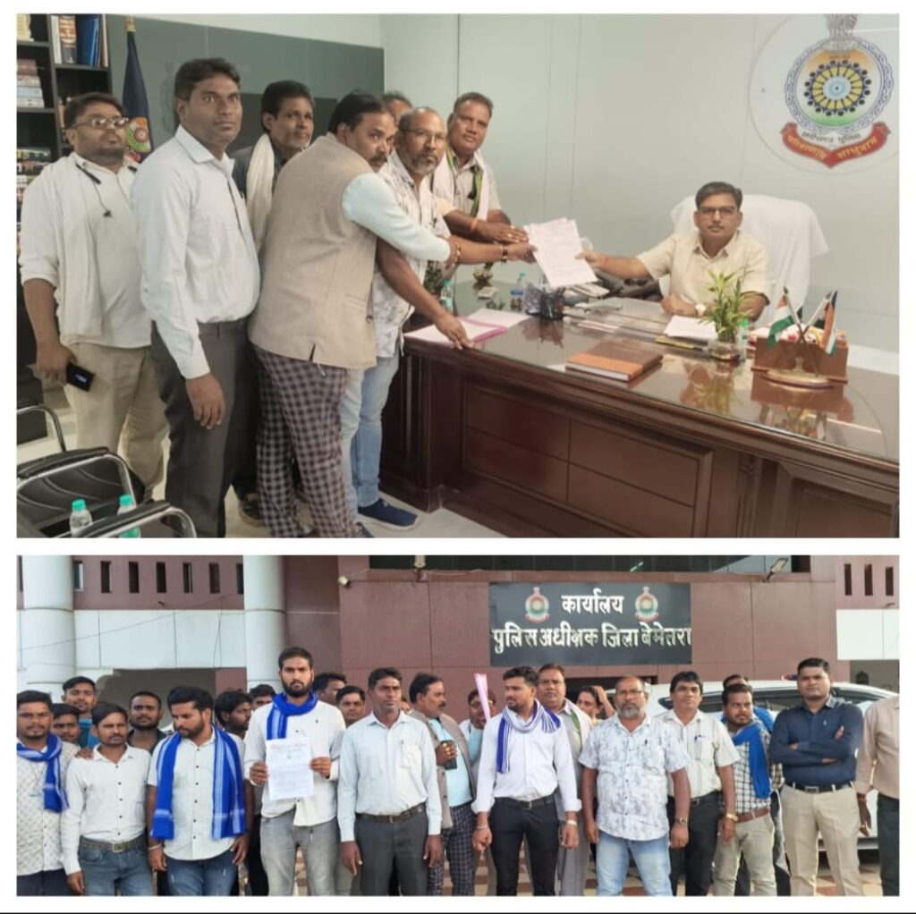 राजधानी से जनता तक। बेमेतरा -दिनांक 28/10/2025 को सतनामी समाज कल्याण एवं विकास समिति बेमेतरा द्वारा पुलिस अधीक्षक बेमेतरा को ज्ञापन देकर मांग किया गया कि रायपुर के आदेश सोनी जो अपने आपको गौ सेवक कहता है के द्वारा दिनांक 25/10/2025 के एक निजी चैनल में गौ हत्या को लेकर मुद्दे की बात कार्यक्रम में सतनामी समाज के लिए गाय काटने के कार्य से संबोधित करते हुए मुख्यमंत्री, गृहमंत्री को रोजगार की व्यवस्था करके समाज को मुख्य धारा में जोड़ने की बातें कही गई। इससे प्रदेश के सतनामी समाज की धार्मिक भावनाओं को ठेस पहुंची है।उनके द्वारा इस प्रकार के निम्न स्तरीय, संकीर्ण मानसिकता के बयानों से समाज काफी आहत महसूस कर रहा है। बेमेतरा सतनामी समाज के विभिन्न संगठनों के द्वारा इस विषय को लेकर बेमेतरा पुलिस अधीक्षक श्री रामकृष्ण साहू से मुलाकात किया गया और आदेश सोनी के ऊपर प्रकरण पंजीबद्ध कर गिरफ्तार करने की मांग किया गया।