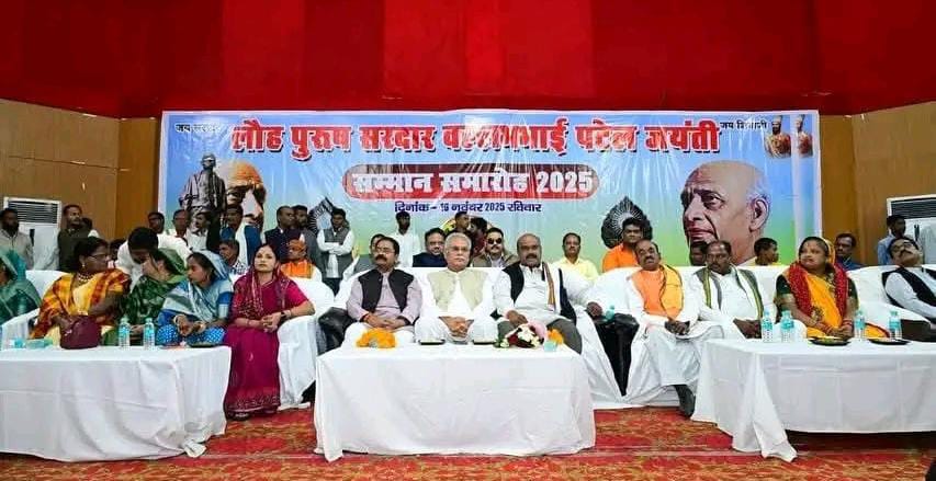 प्रथम सत्र को संबोधित करते हुए पूर्व मुख्यमंत्री भूपेश बघेल ने कहा कि सरदार पटेल के दृढ़ नेतृत्व ने देश की सैकड़ों रियासतों को एक सूत्र में जोड़कर भारत को अखंड राष्ट्र के रूप में स्थापित किया। उन्होंने कहा कि आज भी समाज के सामने कई चुनौतियाँ हैं, जिन्हें एकजुट होकर ही हल किया जा सकता है। बघेल ने समाज को मतभेद भूलकर संगठित रहने की अपील की और कहा कि “एकता ही हमारा सबसे बड़ा बल है।” साथ ही उन्होंने अपनी पूर्व सरकार द्वारा पांच वर्षों में किए गए कार्यों का उल्लेख किया और वर्तमान सरकार पर वादों से पीछे हटने का आरोप लगाया इसके बाद दूसरे सत्र में वित्त मंत्री ओ.पी. चौधरी ने कहा कि यदि स्वतंत्रता के बाद सरदार पटेल देश के प्रथम प्रधानमंत्री बने होते, तो आज भारत का स्वरूप और भी मजबूत होता। उन्होंने कहा कि पटेल की प्रशासनिक क्षमता और कठोर निर्णय लेने की क्षमता अद्वितीय थी। चौधरी ने समाज को संगठित रहने का संदेश देते हुए भवन निर्माण के लिए 15 लाख रुपये देने की महत्वपूर्ण घोषणा की। उनकी घोषणा पर सभागार तालियों से गूंज उठा समारोह में जिले के विभिन्न विद्यालयों के मेधावी छात्र-छात्राओं का सम्मान भी किया गया। हाल ही में विभिन्न परीक्षाओं में श्रेष्ठ प्रदर्शन करने वाले बच्चों को शॉल, प्रशस्ति पत्र और स्मृति चिन्ह देकर सम्मानित किया गया। अतिथियों ने बच्चों को शिक्षा, अनुशासन और लक्ष्य के प्रति समर्पित रहने की प्रेरणा दी कार्यक्रम में बड़ी संख्या में जनप्रतिनिधि और विशिष्ट अतिथि उपस्थित रहे। इनमें प्रमुख थे