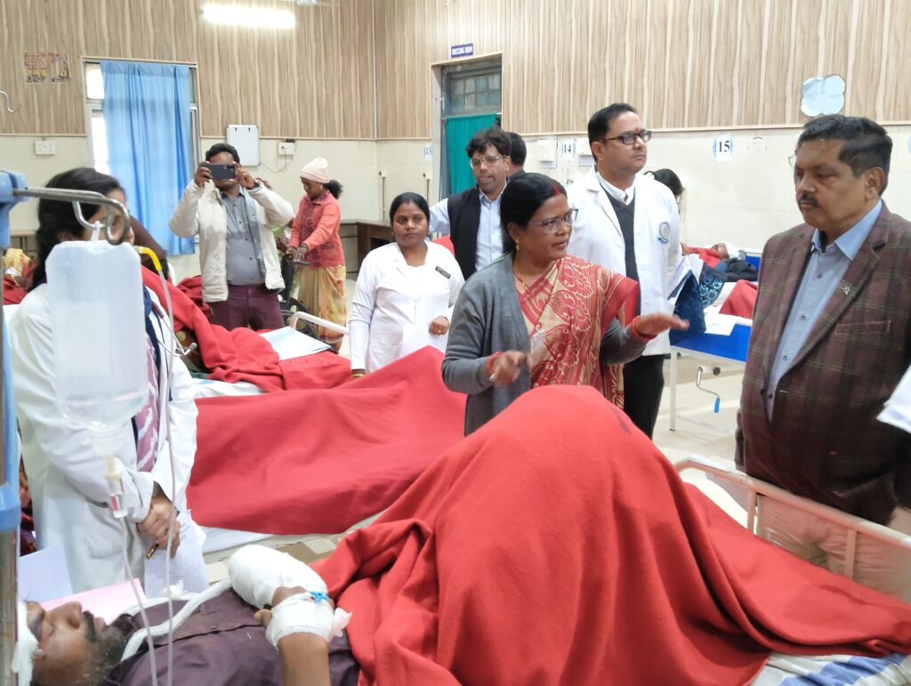 सामरी :-बलरामपुर जिला के सामरी विधानसभा के विधायक उद्देश्वरी पैकरा ने छत्तीसगढ़–झारखंड सीमा के ओरसा घाट में हुई दुःखद सड़क दुर्घटना में घायल यात्रियों से जिला अस्पताल, अंबिकापुर पहुँचकर सभी के स्वास्थ्य का जायजा ली। इस दौरान घायलों का हालचाल जाना एवं उनके उपचार हेतु की जा रही चिकित्सीय व्यवस्थाओं का जायज़ा लिया।