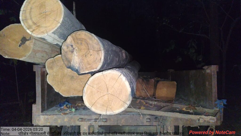 प्राप्त जानकारी के अनुसार, गोलापल्ली वनपरिक्षेत्र के अमले द्वारा रात्रि गश्त के दौरान तड़के सुबह करीब 3:00 से 3:30 बजे के बीच संदिग्ध गतिविधियों पर नजर रखते हुए कार्रवाई की गई। इस दौरान अवैध रूप से परिवहन किए जा रहे लगभग 2.1 घनमीटर सागौन लट्ठा एवं चिरान को जब्त किया गया, जिसकी अनुमानित कीमत करीब 2.5 लाख रुपये बताई जा रही है।