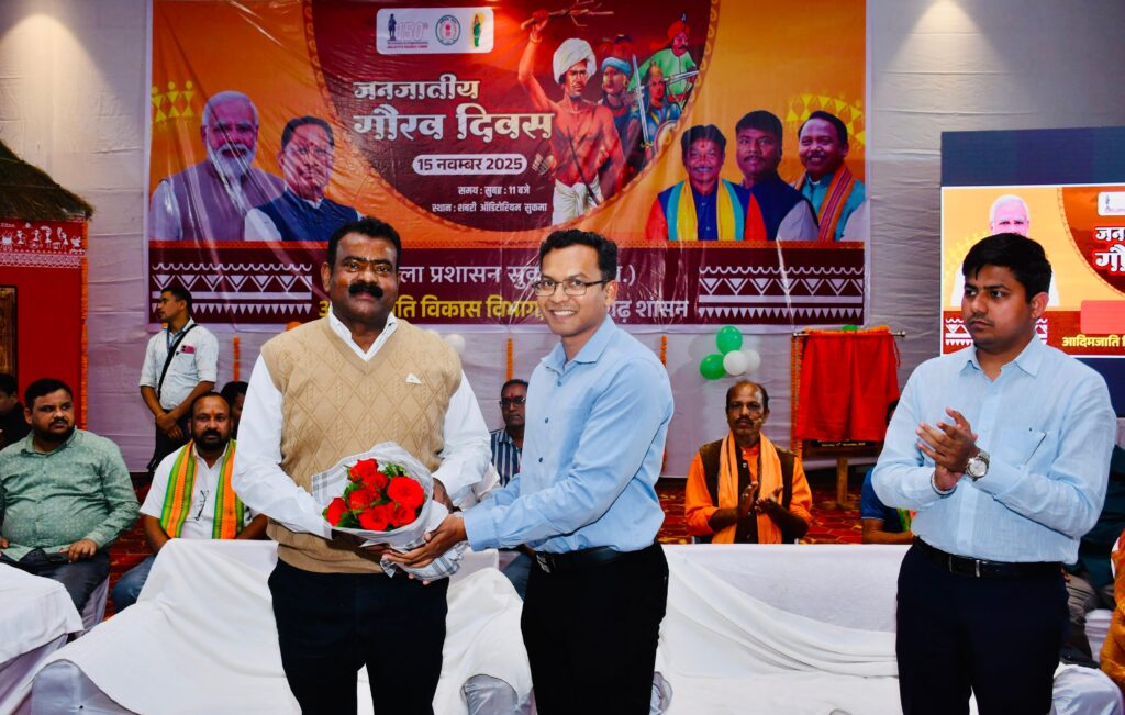 जनजातीय गौरव दिवस के अवसर पर स्वतंत्रता संग्राम सेनानियों के परिजनों, विभिन्न जनजाति समाज के प्रमुखों, नक्सल प्रभावित शहीद परिवारों व बोर्ड परीक्षाओं में प्रथम-द्वितीय स्थान प्राप्त विद्यार्थियों को सम्मानित किया गया।