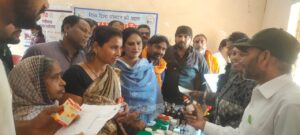 स्टॉलों का अवलोकन, हितग्राहियों को आयुष्मान कार्ड वितरण