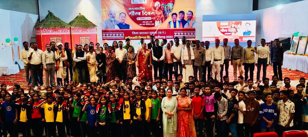 सुकमा – आदिवासी जननायक भगवान बिरसा मुंडा जी की 150वीं जयंती के उपलक्ष्य में आज शबरी ऑडिटोरियम सुकमा में जिला स्तरीय जनजातीय गौरव दिवस का भव्य आयोजन किया गया। इस अवसर पर प्रधानमंत्री श्री नरेन्द्र मोदी नर्मदा ज़िले के डेडियापाड़ा से वर्चुअली जुड़कर देशवासियों को संबोधित हुए। उन्होंने बिरसा मुंडा जी के स्वतंत्रता संग्राम में अतुलनीय योगदान को स्मरण करते हुए कई महत्वपूर्ण विकास परियोजनाओं का उद्घाटन एवं शिलान्यास किया।