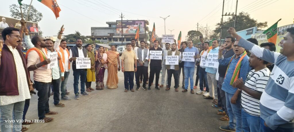 सुकमा – भारतीय जनता युवा मोर्चा के प्रदेश अध्यक्ष श्री राहुल योगराज टिकरिहा जी के आह्वान पर, भाजपा जिलाध्यक्ष आदरणीय श्री धनीराम बारसे के मार्गदर्शन एवं युवा मोर्चा जिला अध्यक्ष आदरणीय श्री शोभन गंदामी जी के नेतृत्व में आज दिनांक 28 दिसंबर 2025 को सुकमा के बस स्टैंड परिसर में प्रदर्शन किया गया।