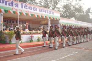 राजधानी से जनता तक| कोरबा| राजस्व एवं आपदा प्रबंधन, पुनर्वास, उच्च शिक्षा मंत्री छत्तीसगढ़ शासन टंक राम वर्मा के मुख्य आतिथ्य में कोरबा जिला मुख्यालय के सीएसईबी फुटबॉल ग्राउंड में हर्षोल्लास के साथ 77वें गणतंत्र दिवस के जिला स्तरीय समारोह का आयोजन हुआ। श्री वर्मा ने ध्वजारोहण कर परेड की सलामी ली। जिला स्तरीय समारोह में इस वर्ष राष्ट्रगान के साथ-साथ राष्ट्रीय गीत का भी सस्वर गायन किया गया। मुख्य अतिथि द्वारा प्रदेश के मुख्यमंत्री श्री विष्णुदेव साय का छत्तीसगढ़ वासियों के नाम संदेश का वाचन किया गया। अनेकता में एकता के प्रतीक गुब्बारे आकाश में छोड़े गये। गणतंत्र दिवस के अवसर पर जिले के शहीदों के परिजनों को शॉल, श्रीफल भेंट कर विशेष सम्मान किया गया और वीर सेनानियों की शहादत के प्रति कृतज्ञता व्यक्त की गई।