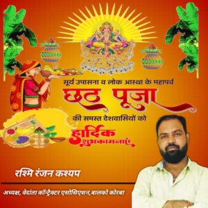 छठ महापर्व पर गणेश शर्मा ने दी कोरबा वासियों को शुभकामनाएं