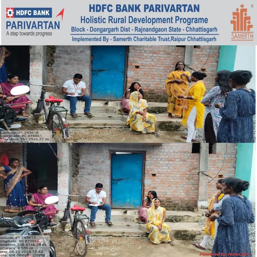राजधानी से जनता तक| जिला राजनांदगांव के डोंगरगढ ब्लॉक में — HDFC बैंक के HRDP (होलिस्टिक रूरल डेवेलपमेंट प्रोग्राम) ‘परिवर्तन’ प्रोजेक्ट के सहयोग से समर्थ चैरिटेबल ट्रस्ट द्वारा डोंगरगढ़ ब्लॉक की 15 ग्राम पंचायतों में समग्र ग्रामीण विकास की दिशा में अगले 3 वर्षो के लिए महत्वपूर्ण पहल की जा रही है। इन ग्राम पंचायतों में खुर्सीपार, बिलहारी, साहसपुर, पुरैना, कलकसा, अछोली, बेलगांव, विजनापुर, शिवनीकला, मूरमुदा, भोथली, रीवागहन, देवकट्टा, मनकी और शिवपुरी शामिल हैं।
